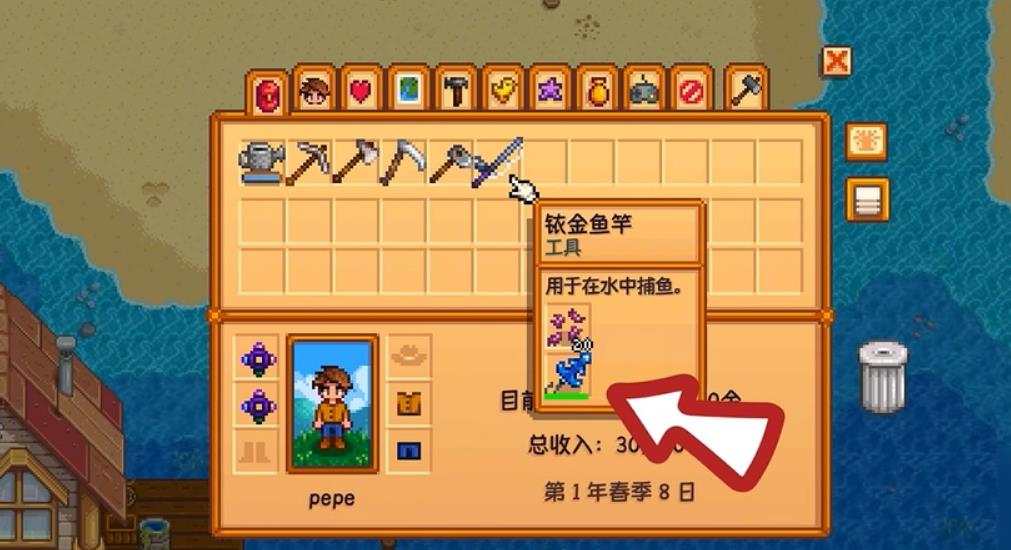 在星露谷物语里装上优质浮标提升钓鱼体验,首先得确保你已经解锁了铱金鱼竿。优质浮标是个好东西,它能让你钓到的鱼品质直接提高一等,比如银星变金星,特别适合想收集高品质鱼的小伙伴。这玩意儿只能装在铱金鱼竿上,普通的鱼竿可不行哦。打开背包后,找到优
