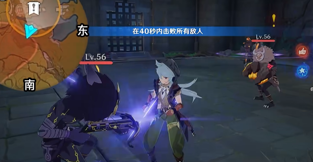 第三座塔为限时战斗挑战,共三层,每层需在规定时间内击败敌人。第一层为丘丘人,第二层增加火史莱姆,第三层则会出现冰水元素组合的敌人,需优先击破一种属性以避免被冻结干扰。建议携带克制属性的角色,并在挑战前破坏场内的突变石以降低难度。集齐三个光导部件后,返回中央石碑触发最终战斗,击败盗宝团即可解锁三个华丽宝箱。