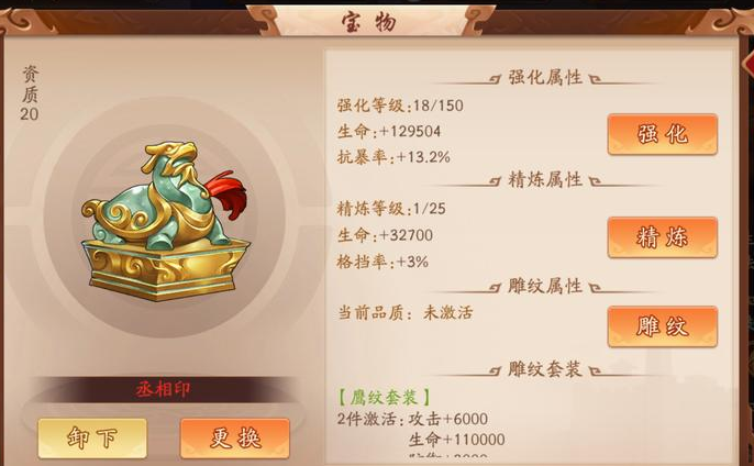 功能性宝物如丞相印或锦囊妙计可作为战术补充。丞相印象征权力,契合董卓的野心家人设,其提供的团队增益效果能提升群雄阵容的整体容错率;而锦囊妙计则赋予玩家额外的策略选择空间,在特定战局中通过控制或减益效果打破僵局。需注意此类宝物更依赖阵容搭配,单独携带时收益有限。