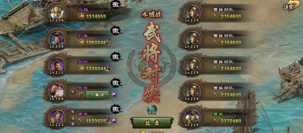 战斗过程中有几个关键节点需要特别注意。马超开场要尽快封住第二将的四排兵力,甘宁的任务是破掉第三将的第一辆战车两格护甲。周泰作为主力输出,要确保不被小抓和平砍破甲,至少要消灭两个敌将。孙权可以配合洛水技能不断吸血续航,最后看准时机放战法收割。如果发现某个武将连续被克制,建议重新调整站位再尝试。