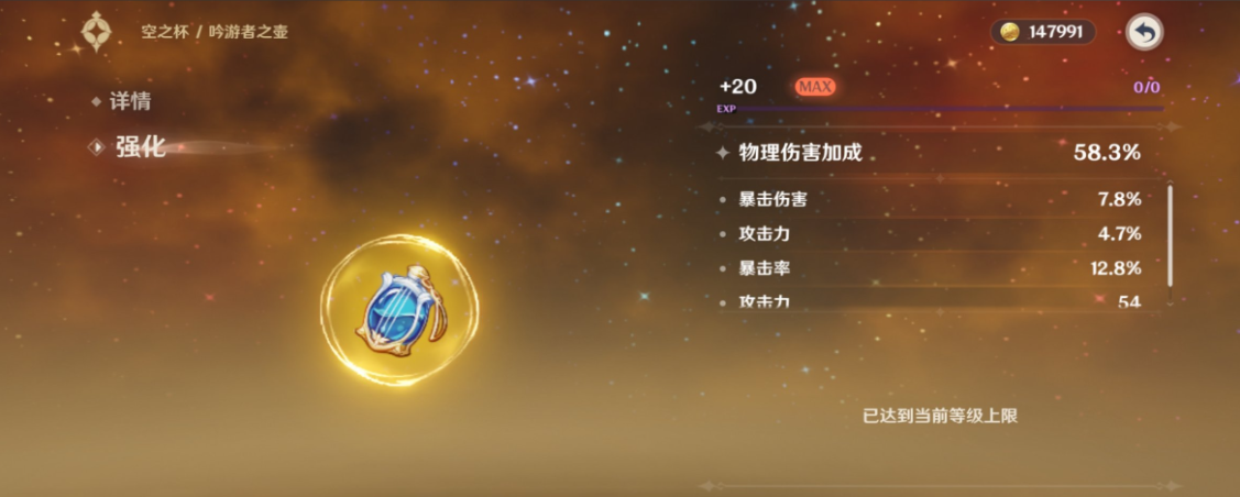 暴击率、暴击伤害、攻击百分比为有效词条,若物理杯副词条较差,而攻击杯具备双暴属性,则后者更具实用性。对于追求极限爆发的玩家,物理杯仍是毕业选择,但普通玩家无需强求,合理调配现有资源即可发挥尤拉80%以上的强度。物理杯为理论最优解,攻击杯在特定条件下可替代,两者差异可通过副词条弥补。