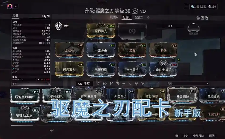 武器配卡方面,前期需优先强化基础属性。近战通用模组如血压点狂暴可提升暴击率与攻速,腐坏打击增强基础伤害,元素卡则根据敌人类型灵活搭配腐蚀或病毒属性。战甲需配备生存类模组如生命力钢铁纤维,技能强化则依赖聚精会神简化等降低能耗并提升效果。资源紧张时可暂用受损模组过渡,但完整模组仍是最终目标。