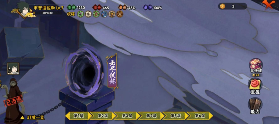 幻之试炼是一个充满随机元素的单人副本玩法,玩家需要通过不断挑战随机关卡来解锁更多能力和角色强化。每天击败3位首领后可领取金币奖励,彻底通关还能获得专属称号。选择合适的忍者和强化能力是通关的关键,建议优先了解所选忍者的优势,确保对技能释放和近战技巧有足够把握。