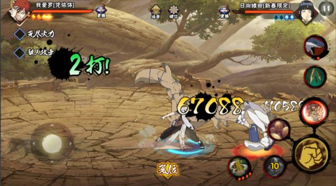 凭依体我爱罗的技能设计非常还原原作,半尾兽化的形态让他在战斗中既有爆发力又有控制能力。一技能砂暴突袭是个带抓取的突进技,适合先手起手;二技能砂时雨能远程消耗,长按还能骗替身。奥义尾兽化·风遁·练空弹更是帅到没朋友,全屏守鹤吐息攻击,视觉效果拉满。拿到手后记得多练习技能衔接,他的连招手感很流畅。