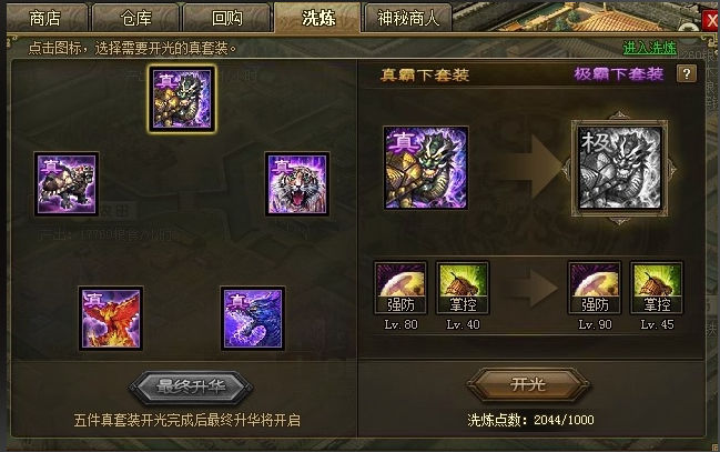 对于觉醒后的姜维,战神套装或兽王套装能进一步提升爆发力,增加暴击伤害和生存能力。五套真级套装(真霸下、真烛龙、真驱虎、真凤凰、真灵龟)也是高阶玩家的首选,尤其是真霸下套装,能显著提高防御和生命值,让姜维在持久战中占据优势。如果资源有限,优先凑齐真霸下或真烛龙套装,这两套在实战中的表现非常稳定。