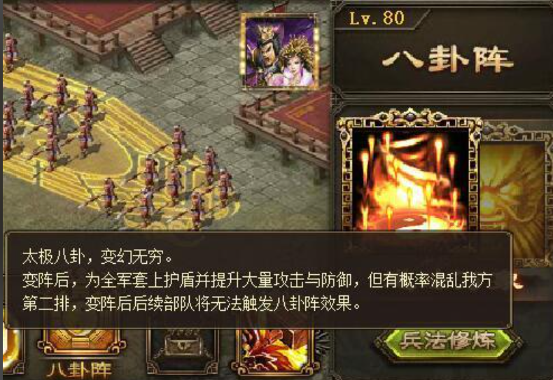 阵法的强化依赖兵书系统,不同属性兵书可进一步优化阵法效果。肉搏武将推荐选择武锋兵书,提升攻击和强攻属性;战法部队则适合兵道兵书,增强攻击和强壮。高阶阵法如四象八卦阵需持有相应等级的六韬兵书才能开启,而10级兵书可激活额外特效。兵书的获取途径包括副本掉落、活动奖励及商城购买,玩家需合理规划资源以提升阵法强度。