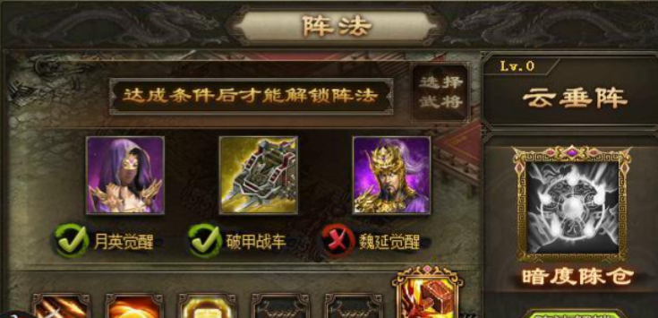 武将的阵法携带需结合其定位和战斗风格。锋矢阵适合高输出武将,能大幅提升伤害;云垂阵则适用于攻城兵,增强攻城效率。阵法与武将的契合度直接影响战斗表现,因此需根据武将特性选择对应阵法。部分阵法需要特定条件激活,如八卦阵需联合觉醒武将携带才能发挥特效,而普通武将携带时仅提供基础属性加成。阵法与套装、战车的搭配也需统筹考虑,避免属性冲突。