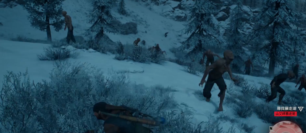 暴走潮的行为模式具有规律性,白天通常躲藏在洞穴或阴暗区域休息,夜晚或被惊扰时才会集体行动。玩家应优先选择白天发动攻击,利用引诱装置将感染者集中到洞口后投掷燃烧弹或引爆油桶。作战过程中需保持移动,避免被包围,通过翻滚和冲刺拉开距离。狭窄地形如桥梁、山谷能限制暴走潮的行动范围,高地则能提供视野优势并减缓感染者追击速度。