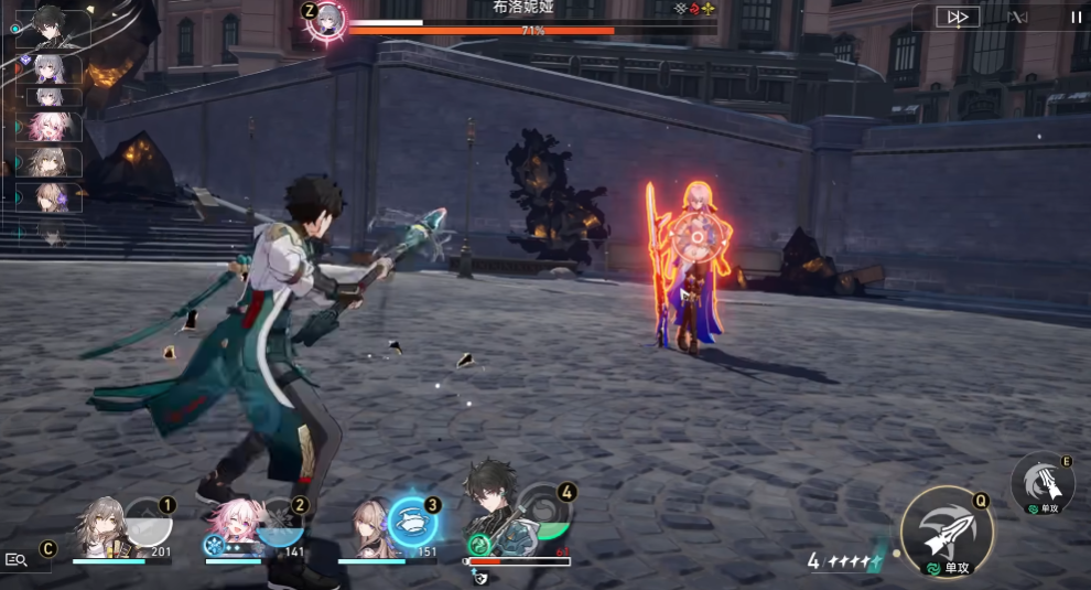 布洛妮娅作为主线剧情中首个具备挑战性的BOSS,其核心机制在于弱点锁定与高爆发连击。战斗分为两个阶段:第一阶段需快速清理携带的小怪,否则布洛妮娅会获得弱点无效状态和高额减伤;第二阶段需利用破盾后的输出窗口集中火力。关键策略是优先击杀小怪破除BOSS的减伤状态,同时利用护盾角色(如三月七)保护低血量队友免受二连击秒杀,并保留冻结类技能(如三月七大招)在弱点击破后控制BOSS行动。