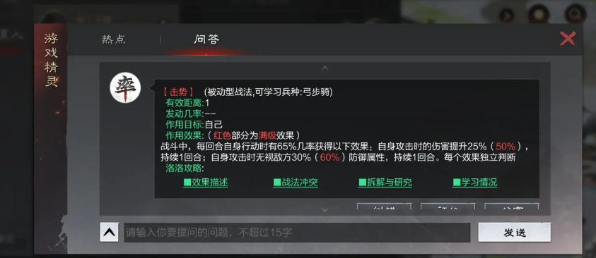 这个战法最适合放在队伍的主力输出武将身上,尤其是担任大营或者中军位置的物理系核心。因为大营位置通常最安全,可以持续输出,而击势的增伤效果能确保输出最大化。有些攻击距离远的武将,放在大营装了击势后,甚至能直接威胁到敌方大营,实现爆头的效果。也要考虑整个队伍的攻击节奏,如果队伍里还有其他提供先手、连击或者增伤效果的武将或战法,比如配合神兵天降、大赏三军之类的指挥战法,或者像张辽提供的连击状态,就能让击势的威力倍增,在战斗一开始就建立起巨大的优势。