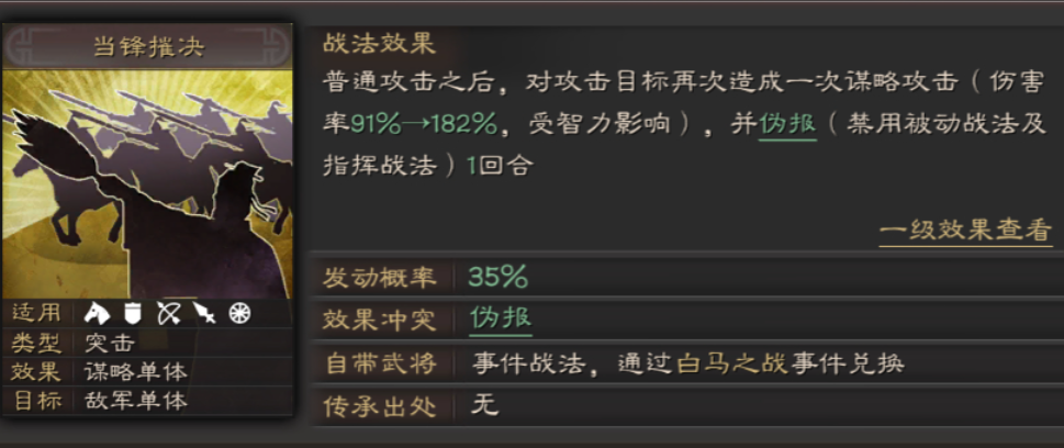如果你想玩法刀孙权,那就把属性点全加到智力上,给他配上当锋摧决和兵无常势这类谋略突击战法。当锋摧决可以打掉对手的关键防御状态,兵无常势则能边打边给自己回血,这样孙权既有不错的谋略伤害,生存能力也强,输出非常稳定。如果你想玩爆力物理流,追求一刀999的爽快感,那就把属性点全加到武力上,战法选择一骑当千、鬼神霆威或暴戾无仁这种高伤害的兵刃突击战法。这种玩法特别依赖连击状态,一旦刷出来,伤害会非常爆炸。