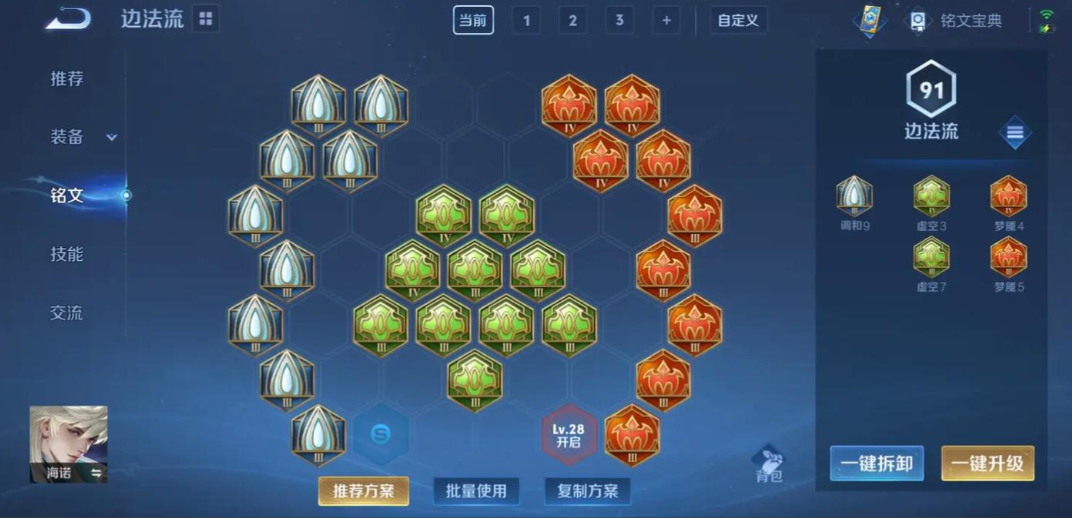 铭文推荐带贪婪、心眼和梦魇这套铭文。它能给你提供可观的法术攻击和高达一定的法术吸血,让你在前中期通过技能和野怪就能回不少血,续航能力很强,几乎不用总回家,能一直保持对线上的压制。而另一套铭文是梦魇、轮回搭配献祭,这套的侧重点不一样。它提供了冷却缩减和更高的法术攻击属性,目的是让你技能转得更快,伤害频率更高,最大化技能爆发。