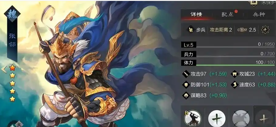 邓艾的核心竞争力在于其自带的主战法险途暗渡,这是一个兼具即时伤害和后续动摇伤害的强力瞬发战法,总伤害率可高达460%,在同类瞬发战法中名列前茅。该战法在造成伤害的同时,还能削弱敌方15%的物理和策略攻击伤害,持续两个回合,这个减伤效果受邓艾的谋略属性影响,会等级和红度提升而增强。这意味着邓艾在队伍中扮演的是一个混合伤害输出兼软控减伤的角色,虽然单次爆发可能不如顶级武将,但持续作战和功能性很强。在给邓艾加点时,可以适当偏向谋略属性,以强化其减伤效果,同时他的速度在步兵中相对较快,这为他争取先手控制或施加减伤状态提供了可能。