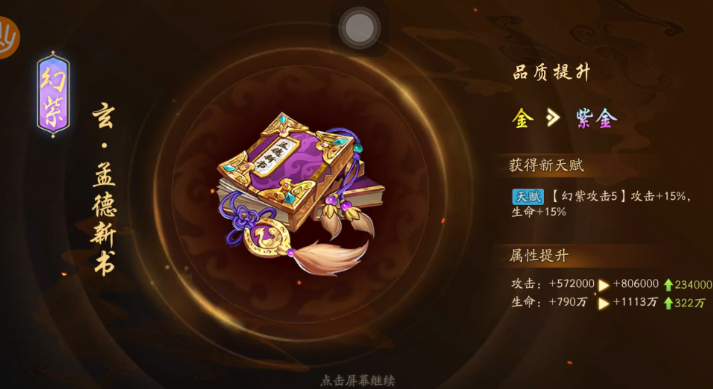 对于咱们新手或者资源不算特别多的玩家来说,怎么用好幻紫符也是个策略。因为它和配套的幻紫石需求量都不小,所以不建议拿到就乱用。最好是优先把资源投入到你阵容里最核心、打算长期培养的主力输出武将或者关键的辅助武将身上。先集中力量把一两个核心武将幻紫到紫金品质,带来的战力提升是非常明显的,比平均分散资源要划算得多。宝物幻紫也可以优先考虑对输出提升最大的攻击类宝物。