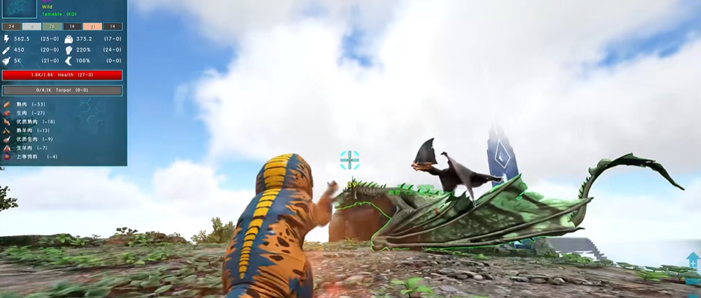 首先需要了解它们的栖息地这种翼龙的刷新点分布虽广但数量稀少,地图左上角的红树林区域是常见的必刷点之一,刷新速度相对较快。地图右上角的矿洞、火山脚下和火山口的矿洞也一定几率刷新。由于它们几乎覆盖除雪山外的所有地区,在高空和地形复杂的区域耐心搜寻是必不可少的,整个孤岛上通常只有寥寥数只,所以发现目标需要一些运气和细致的观察。找到古神翼龙后,真正的挑战在于靠近它。古神翼龙与攻击性强的恐龙不同,它是一种非常胆小的被动生物,警惕性极高,一旦你靠近一定距离就会立刻受惊飞走,因此正面直接冲过去基本会失败。在行动前,你需要做好充足的准备工作,建议制作并穿戴一套吉利服,它能提供极佳的隐蔽效果。发现目标后,在远处就下马并切换为蹲伏姿态靠近可以最大程度避免被发现。