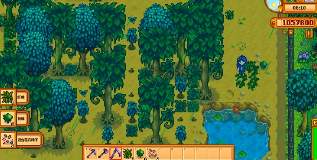 绿雨天的妙处不止于此,它还能催熟你种下的所有树种。桃花心木、橡树、枫树等所有处于生长阶段的树苗,都有50%的概率在绿雨当天直接跳跃到完全成熟状态。这意味着你可以精心规划一片树林,然后在绿雨天瞬间获得大量木材甚至硬木资源。需成熟的橡树或枫树在绿雨天有较高概率临时转变为外观特殊的绿雨树,如果你不想砍伐它们,只需等到第二天,它们就会恢复原貌。这一天也是快速完成林业布局与资源储备的关键节点。