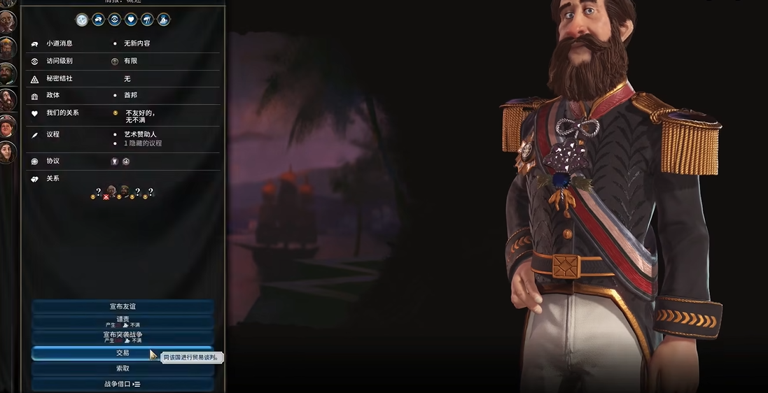 在常规的非战争状态下,玩家同样可以运用特定的交易界面操作技巧来促成对己方有利的交易。一种常见方法是,在与AI的交易界面中,先主动放入一项奢侈品或战略资源,并点击系统提供的让这一交易更公平按钮进行询价。在系统给出一个参考报价后,玩家取消本方提供的除金币外的所有条件,然后将需要支付的回合金币数额略微调低,例如从AI开出的30回合金调整为28回合金,再次点击让交易更公平,此时AI有可能接受这个经过调整后的、对玩家更为有利的新报价。另一种思路是,利用AI对不同类型资源的需求差异,当AI急需某种战略资源时,玩家可以集结一定数量的该资源,例如40匹马或铁,一次性向AI换取其几乎所有的现金储备。