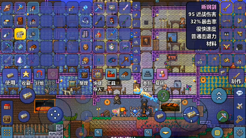 当你集齐了永夜之刃、断钢剑以及断裂英雄剑这三样核心物品后,就可以前往秘银砧或山铜砧进行最终的合成,从而获得泰拉之刃。最终成型的泰拉之刃拥有出色的属性,其基础伤害可观,并且能够发射出可以穿透敌人、射程很远的明亮剑气,这个剑气不消耗任何魔力,在夜间战斗时还能提供不错的照明效果,无论是清理成群的怪物还是对抗强大的Boss都非常实用。