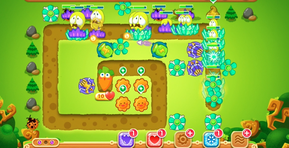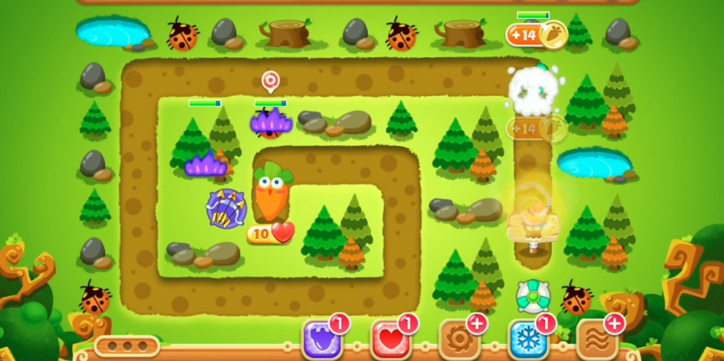 到了游戏中后期,特别是第12波和第19波左右,会出现血量较厚的大型怪物或BOSS,对防线压力较大。此时你需要灵活调整防御布局,若有必要,可以暂停游戏,卖掉前期用于清理道具但位置不佳的低级炮塔,将资源重新分配到怪物汇聚的关键区域,例如终点萝卜附近或路径末端。确保所有空闲位置都布置了多重箭、满级太阳花等具有范围伤害的炮塔,形成扇形的火力覆盖网。最终的防守阵型应以多层减速控制为基础,配合火箭的高爆发和多重箭、太阳花的范围输出,在限制条件下保护萝卜不失血,从而达成金萝卜和水晶萝卜的成就。