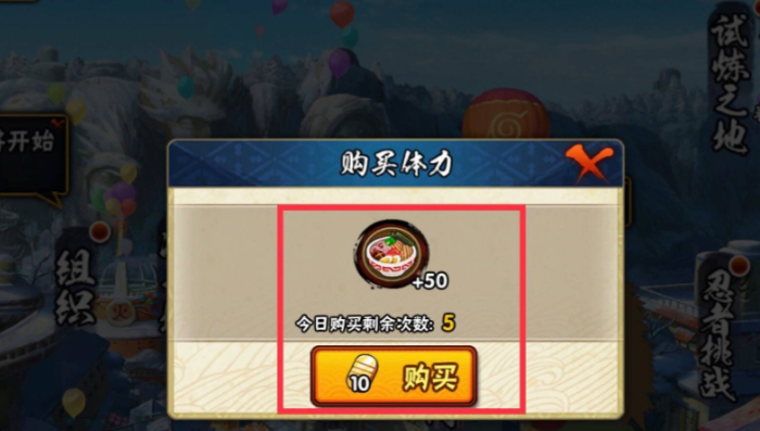 要是体力不够用,随时可以在游戏商店里购买,花金币就能换体力,第一次买可能只要10金币得50点,后面次数多了会稍微贵点,但每天买满几次对快速提升等级很有帮助。一些隐藏途径也别忽视,比如副本通关后宝箱里可能包含体力奖励,或者忍者派遣任务完成后返还的少量体力,这些细节积少成多,能让你玩得更顺畅。