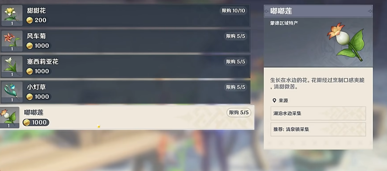 风龙废墟与明冠峡的嘟嘟莲分布较为分散,前者最西侧的单朵采集点因路程较远性价比低,不建议优先选择。后者海岸线附近有3-5朵,需结合地形攀爬或飞行。蒙德城花店店主芙萝拉处每日可购买5朵,单价1000摩拉,适合急需补充时使用。尘歌壶种植系统可批量培育嘟嘟莲,两块土地最多可收获8朵。