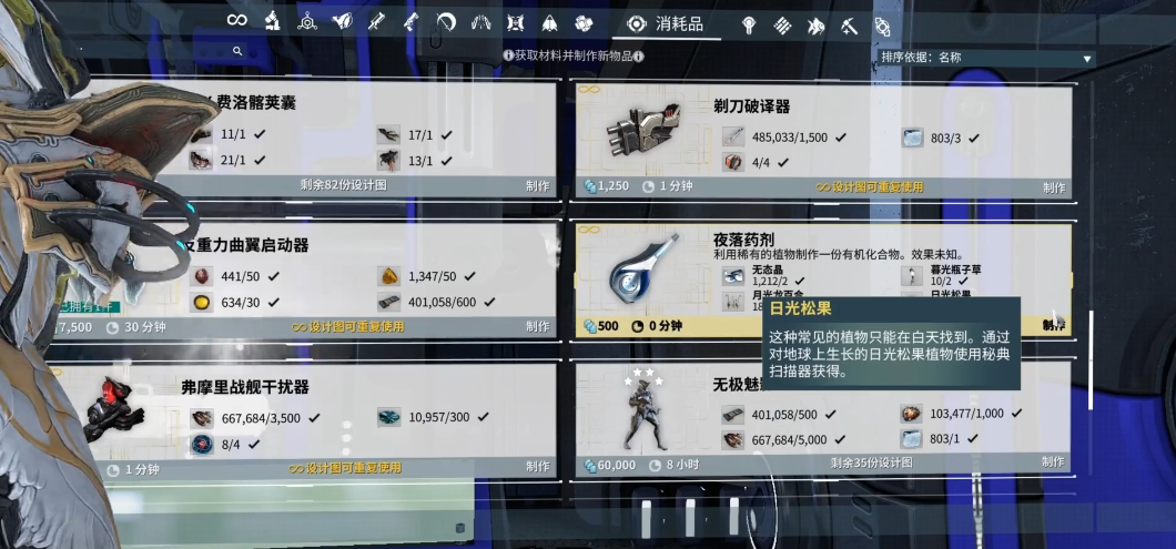 药剂是提升战斗效率的重要资源,其中夜落药剂、暮光药剂和日出药剂是三种关键的特殊药剂。夜落药剂对应诡计多端魅影,其材料包括暮光瓶子草、月光龙百合和日光松果。暮光瓶子草生长在谷神星的废水中,需使用扫描仪采集;月光龙百合在地球随机刷新,需注意地球昼夜交替的影响;日光松果同样在地球采集,但需在夜晚扫描。