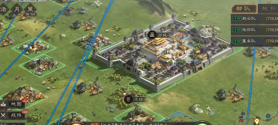 分城的防御加成很高,适合建在战略要地。如果所在区域战事频繁,可以用分城卡住山口或河道,阻挡敌方推进。分城被俘虏会停止资源生产,所以平时要留意周边敌对势力动向,必要时提前闭城或请求盟友协防。分城虽然需要从头建设,但长期来看能大幅提升资源储备和作战灵活性。分城的铜钱产出是重要优势,后期可以用来招募武将或兑换战法点。分城建在高级资源地附近,能更快积累铜钱。分城和主城的资源可以互通,缺哪种资源就重点升级对应设施。分城发育完成后,可以成为第二个军事基地,配合主城形成攻防一体的布局。