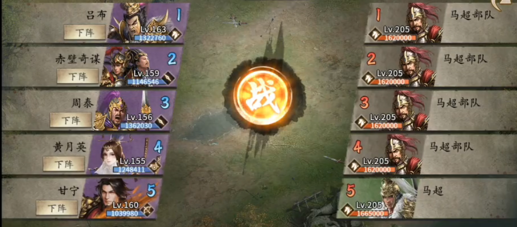 战斗分为两个阶段,第一阶段由吕布开场,利用其高防御特性吸引敌方火力,剩余三排兵力集中攻击敌方前排,触发战法后争取一次性击杀目标。第二阶段派吕蒙上场,使用招兵打击技能消耗敌方兵力,随后典韦跟进进一步削弱敌方战力。排将顺序需严格遵循战车夏侯渊带副将穿霸下、关羽龙套带双黄鞋、凤凰甘宁带司马懿等配置,确保输出与防御的平衡。平民玩家可采用黄符、黄刀、黄鞋等御宝组合,珍宝配置建议7.3,战车配置为1091010,神石至少2阶。