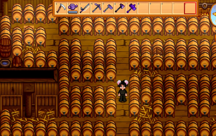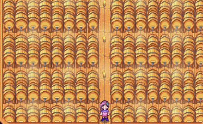 地窖陈酿是提升酒类价值的进阶操作。将普通酒放入地窖的木桶中,经过14天可升级为银星品质,继续陈酿可进一步达到金星或紫星等级,售价随品质提升而增加。陈酿桶仅能用于果酒和蔬菜汁,蜂蜜酒无法通过此方式增值。地窖需通过房屋升级解锁,属于后期玩法,初期玩家可优先积累小桶数量与原料储备。