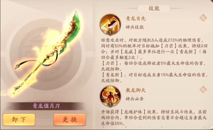 神兽方面优先选离火天官或应龙,离火天官的反伤和虚弱效果能强化曹丕的控场优势,而应龙的后排回怒可以确保曹节稳定开大。兵符推荐惊雷裂空,不受紫金血脉压制且能配合曹丕的增伤效果。装备方面除了倚天剑和青龙刀,记得给辅助位配闭月团扇或七星宝刀,这些神兵的特效都能让控制链更连贯。