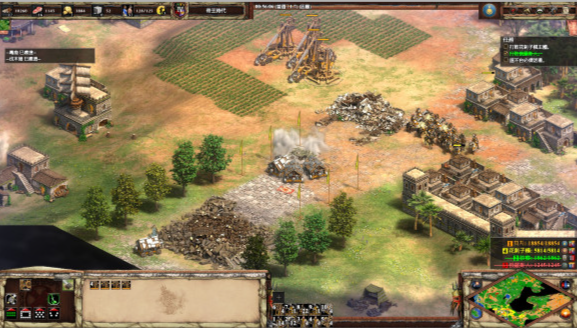经济运营方面需要双线并行,既要保证前线作战单位的持续产出,又要确保后方资源采集效率。建议将获得的农民分批使用,部分留在工程师区域建立临时基地采集就近资源,另一部分通过运输船送回起始区域发展主基地。木材和黄金是此关最紧缺的资源,需优先保障采集效率,食物则可通过狩猎和农田混合获取。在升级至城堡时代后,应立即建造城堡控制关键区域,同时训练蒙古特色单位突骑增强军事实力。