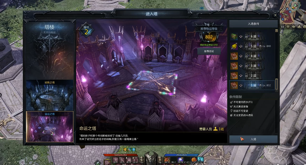 命运之塔的开启需要玩家先解锁魔法之地阿德尼斯。该区域需通过推进主线剧情逐步开放,通常需要角色达到50级才能满足进入条件。进入阿德尼斯后,命运之塔会在地图上明确标注,玩家可直接前往互动入口。需塔内挑战为单人模式,无法组队,因此需提前做好角色强度准备。