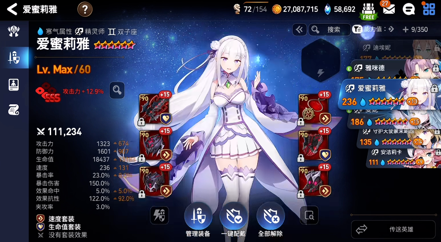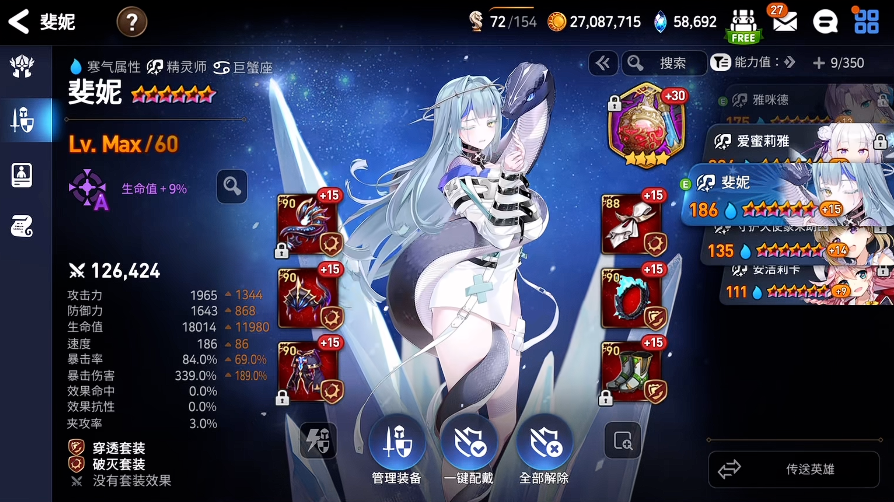 支配者莉莉亚斯建议携带4件速度套装和2件命中套装,防御力最好堆到1000生命值超过1.5W,速度控制在280左右,效果命中尽量达到150%。她的作用是提供稳定的控制和增益效果。塔拉诺尔禁卫队员则推荐4件愤怒套装和2件夹攻套装,攻击力至少3800,暴击伤害越高越好,最好能达到300%。他的高爆发伤害是队伍的主要输出点之一。