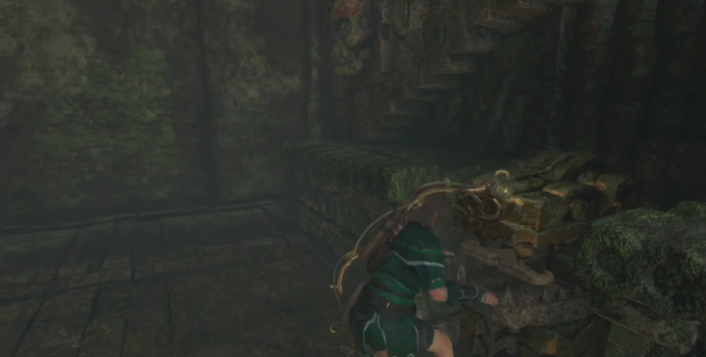 需利用绳索箭矢拉动悬挂的石块,形成临时通路。初始区域需将两块巨石分别拖至压力板上,开启下层通道。进入下层后,需快速通过移动平台,避免因机关复位而坠落。此处建议提前存档,因平台移动节奏较难把握。最终房间需同时启动两侧的拉杆,触发中央石门开启。