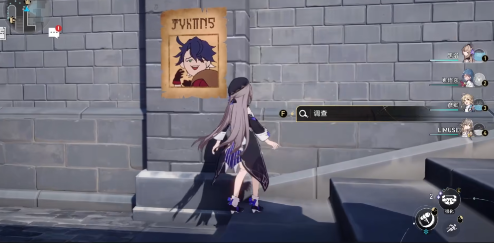 第四张和第五张都在售货机旁边,其中一张靠近地图上方,另一张在地图下方。注意下方那张有显示bug,靠近墙壁才会触发调查点。第六张藏在歌德酒店楼梯下的墙壁,还是三月七的画像,活灵活现。最后一张在歌德酒店门口的公告栏,主角的画像格外醒目,标题直接用了乆乆乆,收集时记得互动一下。