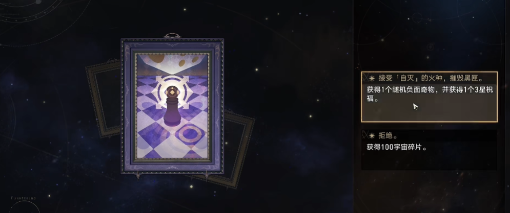 遇到这些事件的时候,小伙伴们的选择会影响最终结果哦。比如三只小猪事件里会出现三只扑满,它们逃跑的时间不一样,最左边的两回合就跑,中间的一回合就跑,最右边的三回合才跑。所以建议先打左边的,再打右边的,中间的可以不管。还有阿哈玩偶事件,经过测试发现无论怎么操作都没有固定结果,应该是完全随机的。如果宇宙碎片不够的话,有些选项就没法选啦,比如猜拳游戏要是碎片不足100就只能进入战斗。
