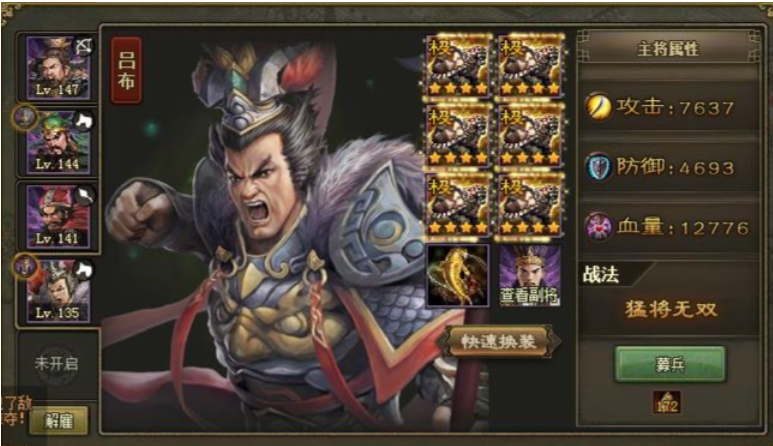 让他真正在战场上发挥出那种神挡杀神的威力,给他穿对装备绝对是头等大事。既要让他能打出爆炸伤害,又得让他能站得住脚,别冲上去没两下就倒下了,毕竟他再猛也架不住被集火。最常见的搭配思路就是围绕龙鳞胸甲、魔龙手套和狂龙战靴这三件套来构建。这套搭配的思路非常清晰,就是攻防血三项全都要。龙鳞胸甲这件装备非常关键,它能给吕布带来防御力和生命值的显著提升,同时还附加攻击加成,等于是让吕布的身板更硬朗了,在冲锋陷阵时更能抗揍。而魔龙手套则是一件攻守兼备的均衡型装备,它能同时提升吕布的攻击力、防御力和生命值,特别适合他那种需要贴近敌人输出的战斗风格。至于狂龙战靴,主要作用同样是增加生命值和防御力,确保吕布在发起冲锋之后还有足够的续航能力,不至于因为太脆而迅速退场。这套组合算是一个比较万金油的方案,对于大多数国战或者日常推图场景来说都挺实用的。