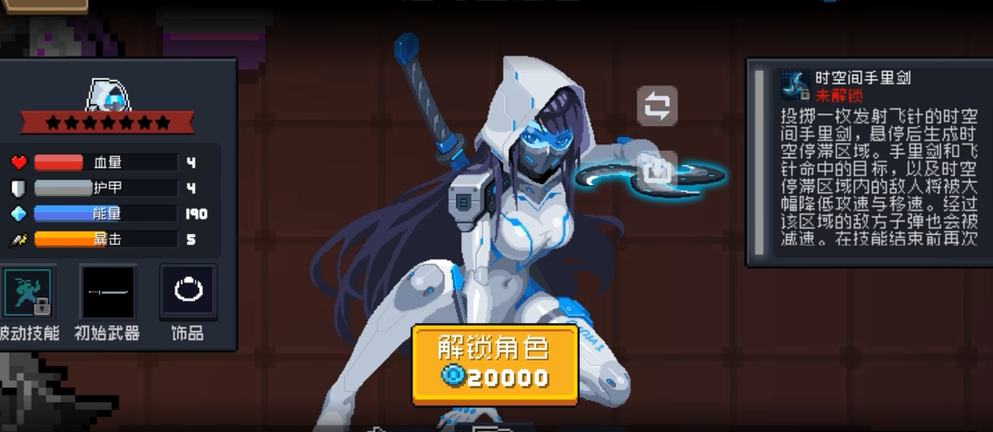 如果你更喜欢操作灵活、技能也够炫的角色,那么超时空忍者或许值得你留意。这个人物在前期的感觉可能不算太突出,但他的技能时空间手里剑一旦吃对了天赋,效果会提升不少。比如获得散弹增多天赋后,他手里剑的子弹会更稳定,伤害能有显著的增长。他的技能很有意思,能在固定位置悬停,再次激活还能瞬移过去进行斩击,用好了不管是清怪还是切入战场都很有策略性。他的初始武器性能也不错,让前期过渡会舒服一些。这个人物在联机模式的特定玩法里,表现非常突出。