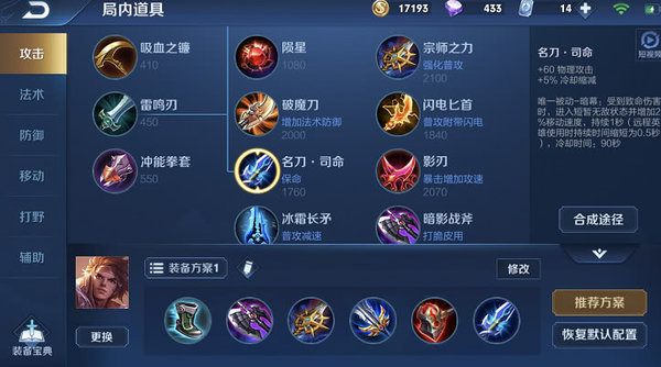 针对削弱后的蒙恬,主流出装分为攻速输出流和半肉抗压流。攻速输出流推荐顺序为攻速鞋、无尽战刃、影刃、暴烈之甲、破晓和纯净苍穹,这套装备能快速提升攻速阈值,配合暴击效果打出高额伤害,同时暴烈之甲和纯净苍穹的免伤效果能与防御姿态的减伤叠加,提升容错率。半肉抗压流则倾向于影忍之足、暗影战斧、反伤刺甲、魔女斗篷和破军,确保在对抗高爆发阵容时不易被秒杀。若敌方控制较多,可将影忍之足替换为抵抗之靴,但蒙恬的蓄力霸体使其通常无需依赖韧性鞋,转而强化物理穿透和生命回复。装备选择需根据战场形势动态调整,例如面对回复型英雄时提前合成制裁之刃来克制敌方续航。