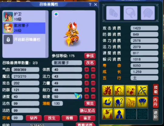 技能继承是假宝宝炼妖的核心机制之一,假宝宝一定会保留自身类型的必带技能,即使这些技能在合成前被打掉也会重新出现。材料宝宝的技能数量直接影响合成后假宝宝的技能格子数量,技能越多的胚子越容易产生多技能假宝宝,玩家可以通过优化材料搭配来提高理想技能组合的概率。资质方面,假宝宝的资质会在材料宝宝资质平均值的0.7倍到1.1倍之间随机浮动,成长则在平均值的0.96、0.98、1.0或1.02倍之间变化,这为玩家提供了通过炼妖获得高资质召唤兽的机会。