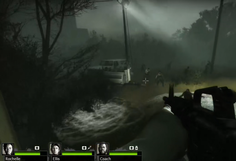 玩家需要在暴雨和僵尸的双重威胁下完成往返任务。开局时建议快速收集物资特别是急救包和燃烧瓶,因为返程阶段无法补充资源。暴雨会严重影响视野且触发随机尸潮,团队需要保持紧凑队形,利用建筑物作为掩体推进。糖厂区域是战役核心难点,狭窄空间内常刷新多只Witch,可采用远程武器集火或利用地形BUG点规避,但注意特殊感染者仍能攻击高处目标。