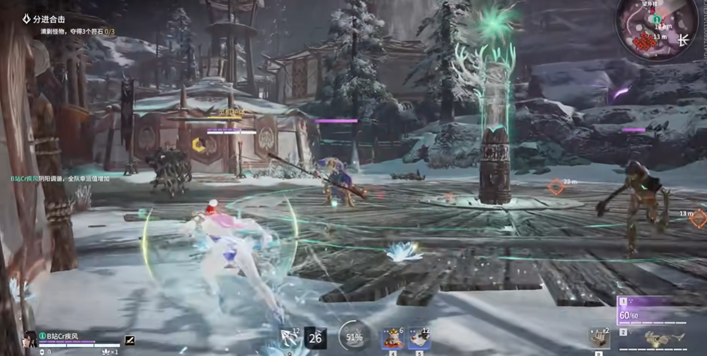 该挑战的核心战斗机制围绕着神射系统展开当你使用弓箭进行满蓄力攻击时会积攒神射值,攒满后即可进入强化的神射状态。在此状态下,弓箭的蓄力时间会显著缩短,并能触发特殊武技贯日惊鸿诀,对首领的头部或身上标记的红色弱点区域进行高伤害的三段连续射击。掌握蓄力节奏、快速进入并维持神射状态,是有效削减首领血量的关键操作循环。