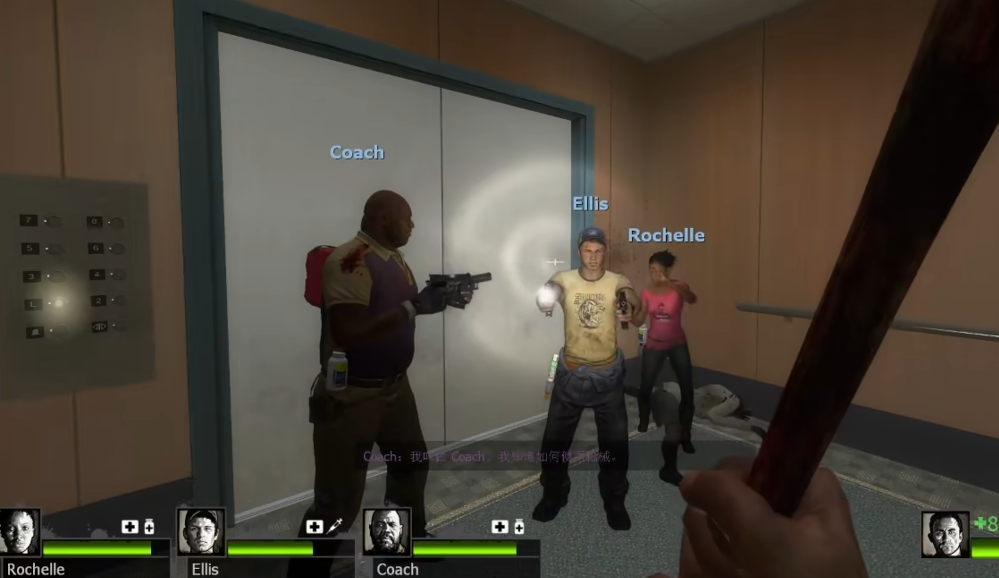 电梯启动后会触发剧情对话,随后电梯因故障停下,需要手动按互动键开门。门外是一片火海,地面上通常会刷新一把长枪,如霰弹枪或突击步枪,建议立刻拾取以增强火力。火场中的火焰会对玩家造成持续伤害,因此必须仔细观察地面,沿着没有火焰的路径前进;部分看似着火的区域其实是身上着火的感染者,其火焰效果不会对玩家造成额外伤害,可以直接通过或绕过。离开电梯后建议队伍第一时间向右侧移动,该方向通常有较安全的通道。此区域的感染者会无限刷新,因此切忌恋战,目标应是快速穿越火场。穿过主要火场后会到达一个开阔的大厅,需要清理完该区域的所有感染者才能触发安全门的开启。建议队伍占据中央位置形成交叉火力网进行防守,成功清理后,朝向正对面标有EXIT的安全门冲刺并进入,即可完成第一关的第一阶段。