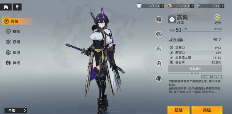 震离·月读定位雷系近战主C,技能机制简洁直观,爆发伤害与持续输出兼顾,清小怪效率极高,面对单体BOSS也能打出高额倍率伤害,适配主线推图、资源副本、多维变量等绝大多数玩法场景。操作上以怒气循环为核心,依靠普攻与技能衔接快速叠加输出增益,无需复杂连招即可打出稳定伤害,即便操作熟练度不高也能轻松驾驭,同时技能范围覆盖充足,群攻与单体输出切换流畅,不会出现输出空窗期,大幅降低开荒阶段的通关压力。