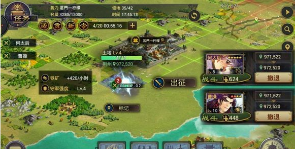 中高级刷地阶段,武将觉醒后可挑战五级及以上野地,五级地需保证8000以上兵力,搭配战必断金等控制技能,利用先手优势快速结束战斗,降低战损。六级及以上高阶野地,需武将等级达标且兵力充足,搭配孙坚等内政武将,可获得额外经验加成,扫荡一次高阶地能获取海量经验,是后期主力冲级的核心途径。体力管理同样重要,合理分配体力给主力与二队,主力专注刷地冲级,二队可屯田获取资源反哺主力,同时委任体力恢复类内政武将,加快体力回复速度,让刷地节奏更紧凑。