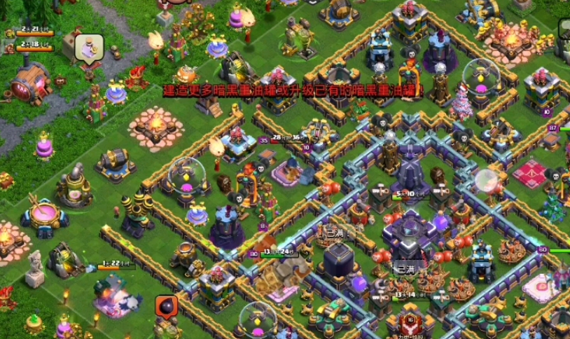 核心区域的城墙布置是防线根基,必须采用回字形多层包裹结构,把高价值建筑完全封闭在内,杜绝单边开口与大面积空隙,防止敌军弹跳法术直接穿透核心。内层城墙优先使用最高等级,提升抗爆破与抗拆能力,地狱塔、X连弩等核心防御紧贴内层城墙布置,让射程完整覆盖外围破墙点位,法师塔与迫击炮居中摆放,形成范围伤害网,敌军一旦炸开外墙便会持续承受群体伤害。部落城堡需嵌入核心格子内部,避免被轻松引援,同时城墙间距控制在单格宽度,不给敌军大部队快速穿插的空间。