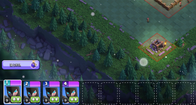 不同阵型需灵活调整战术,面对重火力集中的中心阵,优先用地震足球组合,蛮王走中,地震破墙后足球精准弹跳核心防御,主力部队紧跟中路平推;面对分散阵型,用灵蛇足球组合,蛮王走边溜边,逐步清理边缘防御,再汇合主力进攻中心;面对空军防御较强的阵型,搭配雷龙流,蛮王在边缘提供输出,空军主力一字划平推,同时用隐身法术保护蛮王与空军,避免被敌方空军克制。