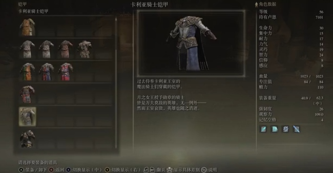 刚踏入交界地的护甲选择是十分重要,这可以大大提高新手的战斗容错率,提高游戏性。前期最实用的护甲有两套:卡利亚骑士套和皇家遗迹套。卡里安骑士属于轻甲,防御均衡且容易获得,在魔法学院卢卡利亚的墓地就能捡到;皇家遗迹则偏向生命加成和恢复效果,适合单挑BOSS时保命。这两套都能让你在开荒阶段少受点苦,不用纠结属性,穿上就能莽。
