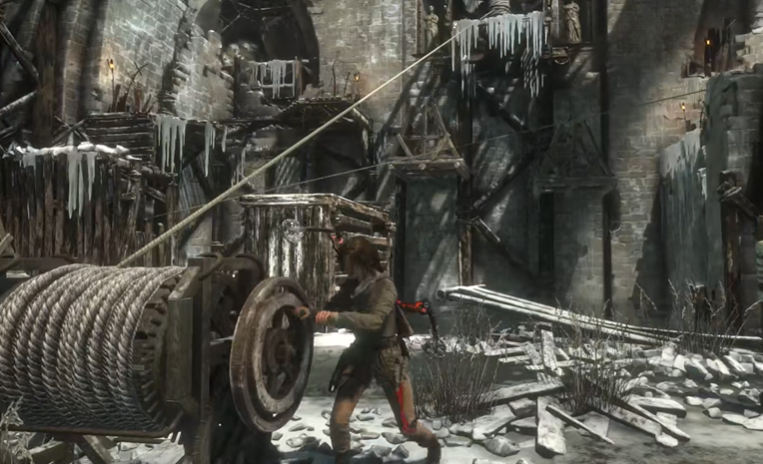 首先咱们要搞定的是邪恶溪谷的三平台跳法。来到场地中央的转轮前,分三步操作:第一步用弓箭瞄准右上角的绳索并固定,第二步转动转轮让对面左右两个平台一高一低,第三步在右边平台升到最高处时用弓箭固定转轴。一定要让右边平台高于左边,这样才能顺利攀爬。跳上右边平台后,继续前进到第二层,用弓箭连接对面转轮,再返回一层调整转轮让左边平台高于右边。最后快速跳到对面高台,用二段跳抓住墙壁边缘就能到达第三层。