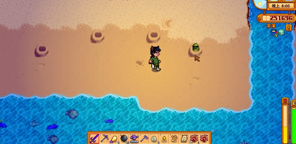 对于姜岛海边出现的绿色地鼠,其位置和奖励有所不同。这种地鼠的活动范围在姜岛的沙滩地带,玩家需要先找到其在沙滩上的洞穴位置。捕获方法与通用技巧高度一致,同样推荐使用蓄力水壶对其洞穴灌水来完成捕获。成功抓住姜岛的地鼠后,玩家将获得非常珍贵的金色核桃作为奖励,这是解锁姜岛众多特殊功能和物品的关键收集品之一。